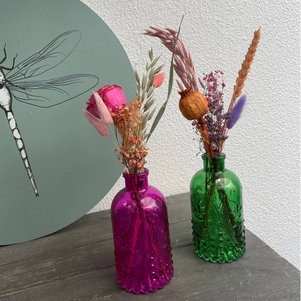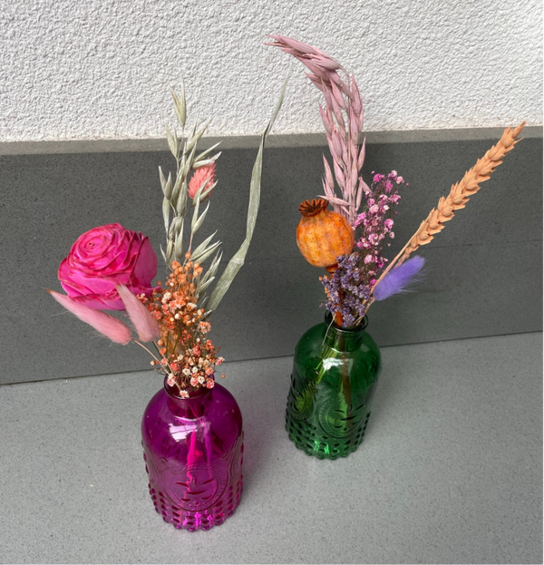 • Leuke kleurrijke vaas met droogbloemen