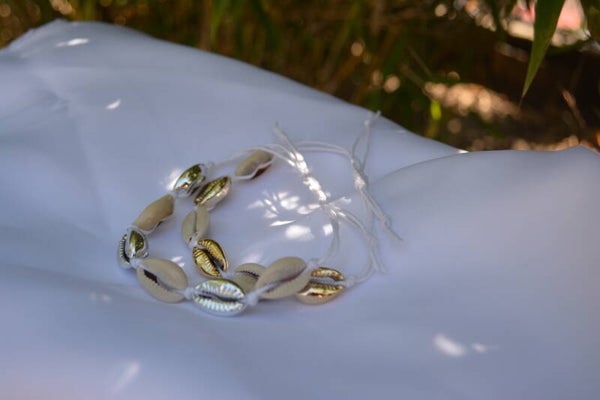 -Armbandje met zilver of gouden schelpjes ertussen!
